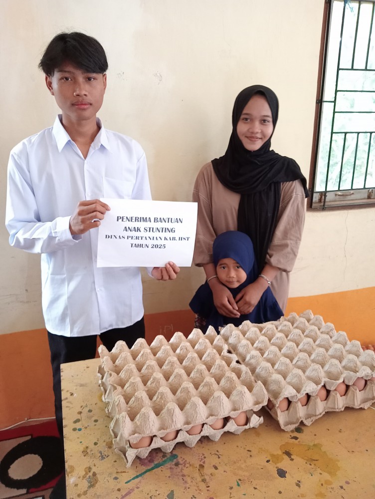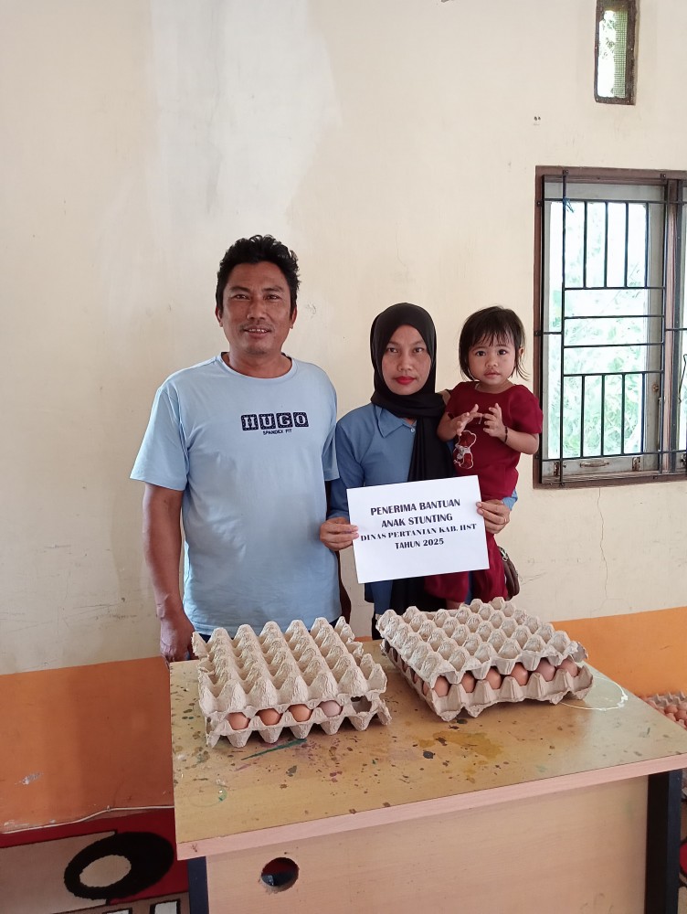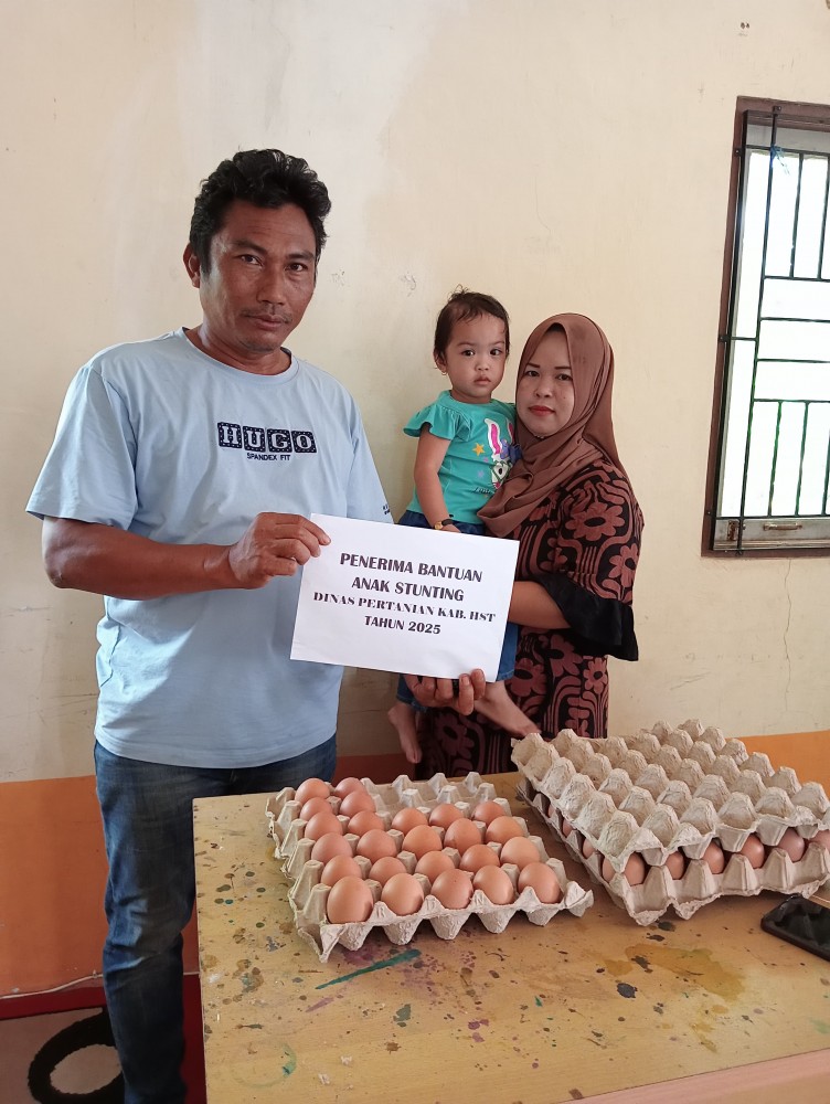 Dinas pertanian hst. menggelar kegiatan pemberian bantuan paket telur ayam terhadap anak stunting di desa pandanu Jum'at (14/11/2025).
